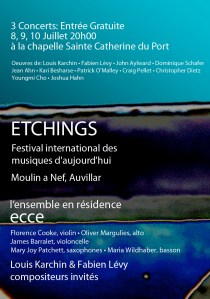 Okay, so the Etchings festival itself was pretty incredible. I met a lot of fabulous people, and the performers were excellent. My latest acoustic piece, Luminous Flux, for alto sax, bassoon, violin, viola, and cello was rehearsed and then premiered by members of the East Coast Chamber Ensemble at this 13th century chapel in the town of Auvillar, France. The guest composers were Fabien Levy and Louis Karchin, who both had some extremely refreshing insight into my music.